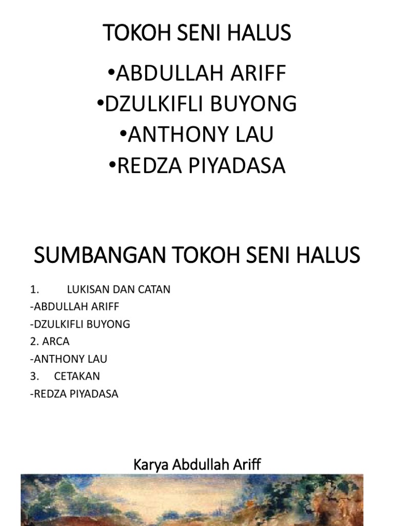 Apakah Seni Halus - Seni halus • seni tembikar • seni ukir • seni logam • seni tekstil, tenun dan tekad • seni anyaman 29.